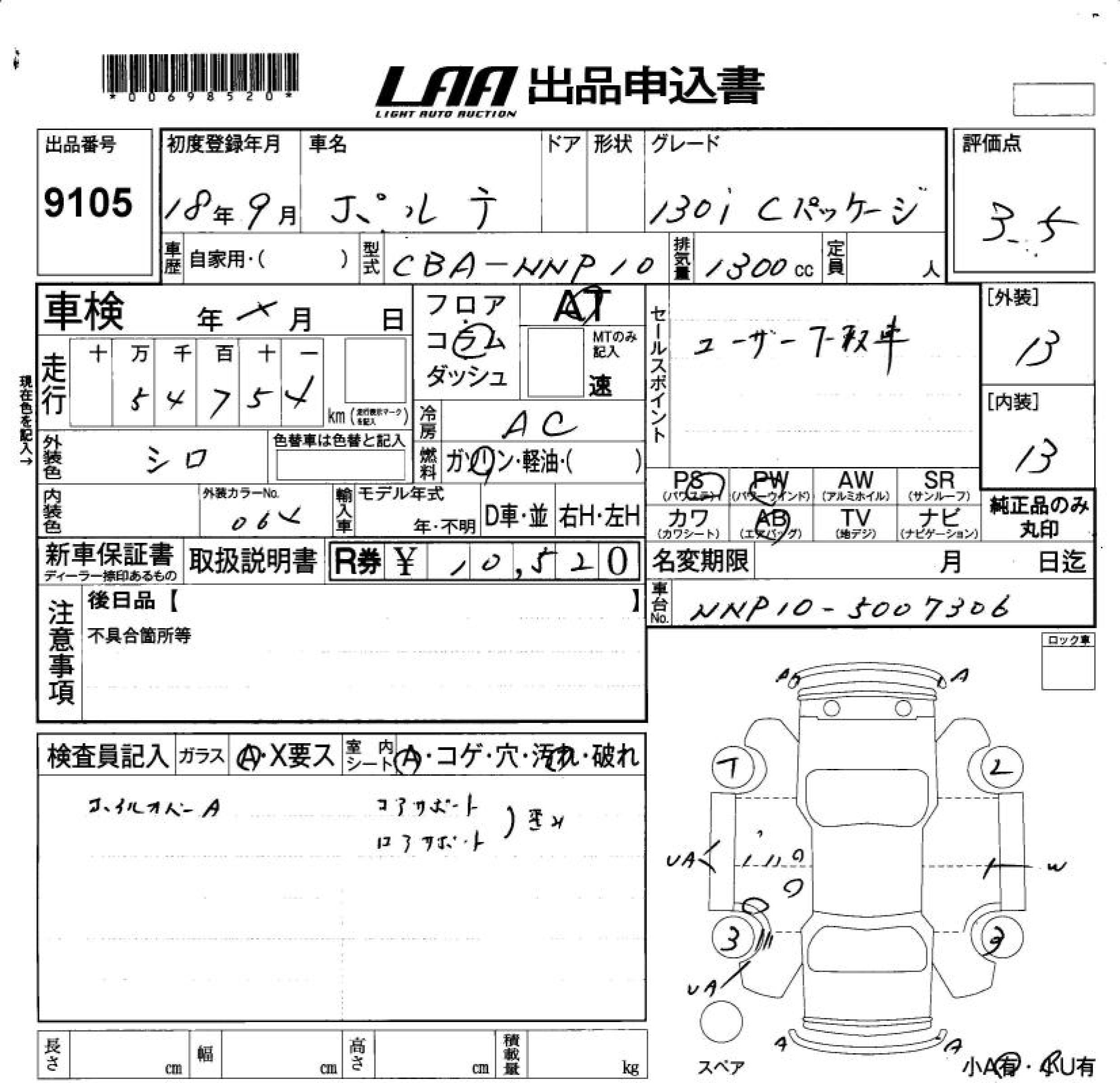 TOYOTA PORTE 130I C PACKAGE - лот 9105