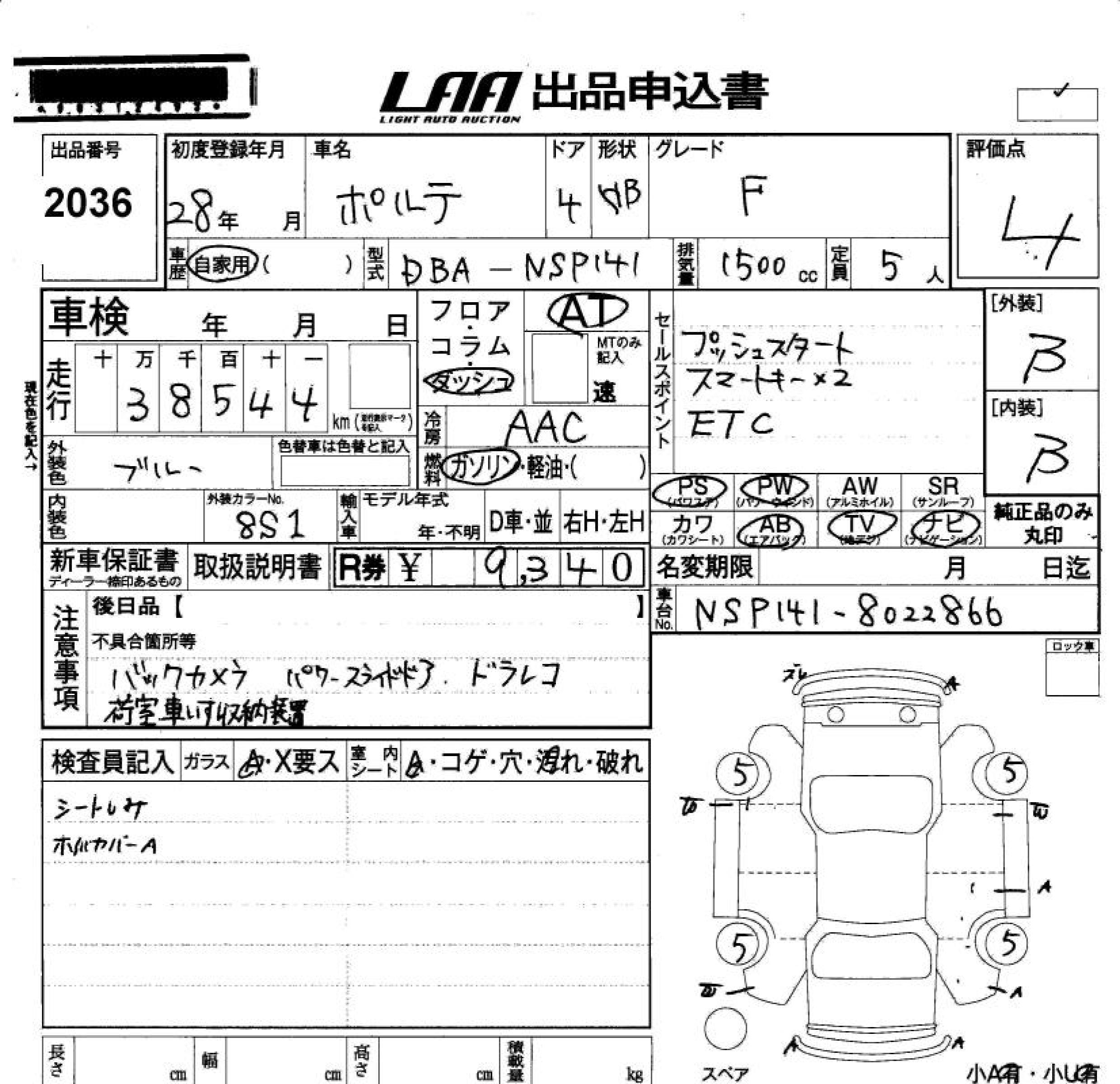 TOYOTA PORTE F - лот 2036
