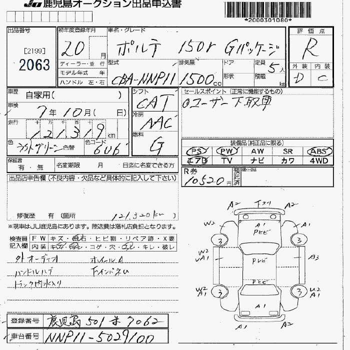 TOYOTA PORTE 150R G PACKAGE - лот 2063