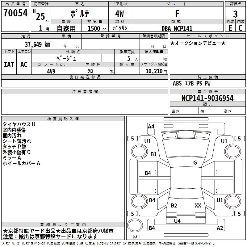TOYOTA PORTE F - лот 70054