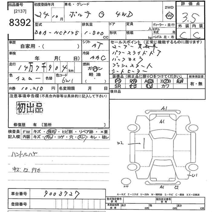 TOYOTA PORTE 4WD G - лот 8392