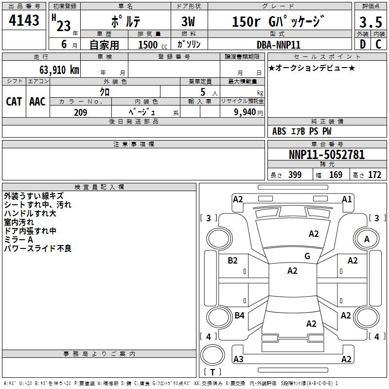 TOYOTA PORTE 150R G PACKAGE - лот 4143