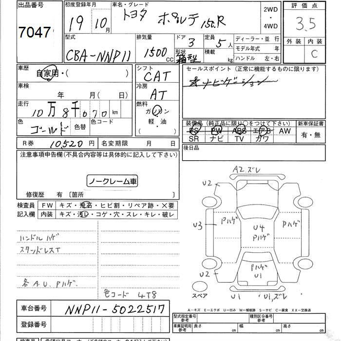 TOYOTA PORTE 150r - лот 7047