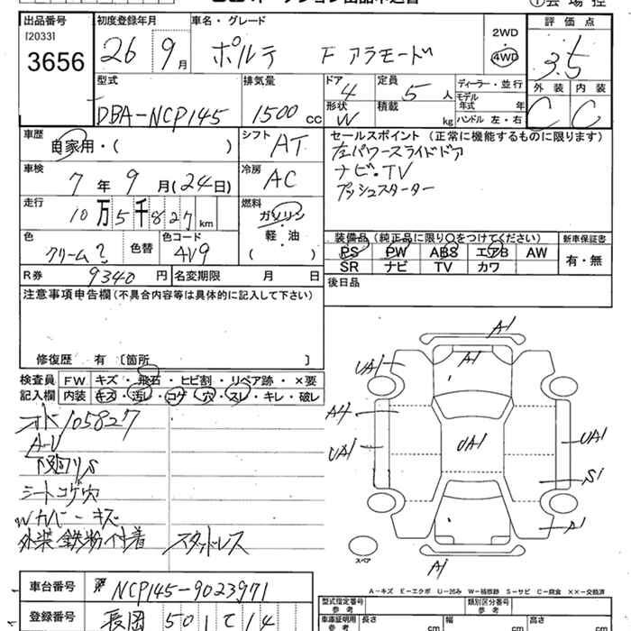 TOYOTA PORTE 4WD FALA MODE - лот 3656