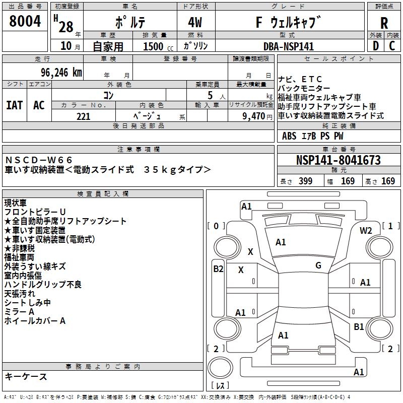 TOYOTA PORTE F WELL CAB - лот 8004