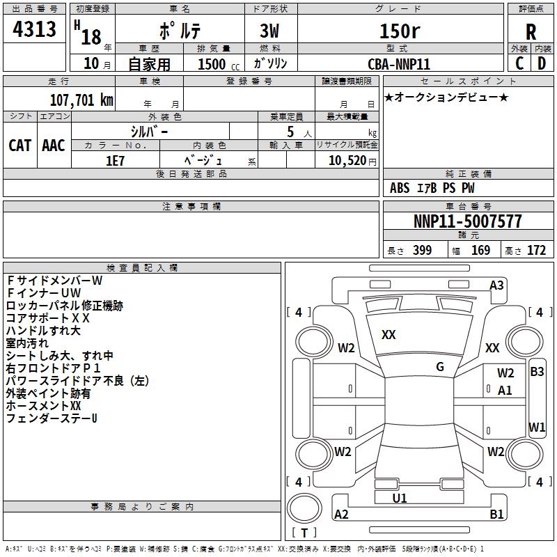 TOYOTA PORTE 150r - лот 4313
