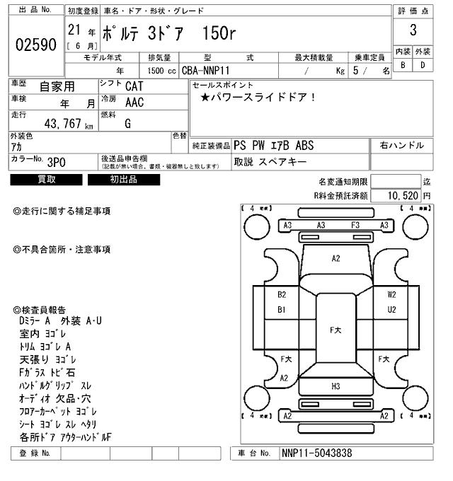 TOYOTA PORTE 150r - лот 2590
