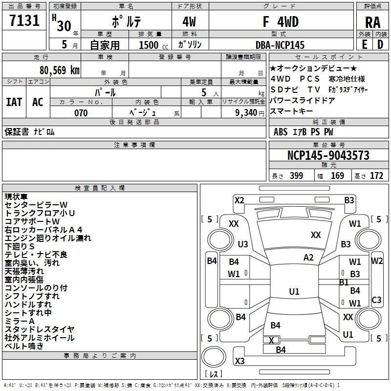 TOYOTA PORTE F 4WD - лот 7131