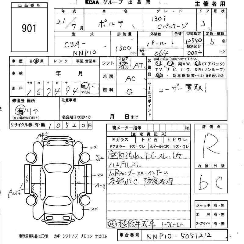 TOYOTA PORTE 130I C PACKAGE - лот 901