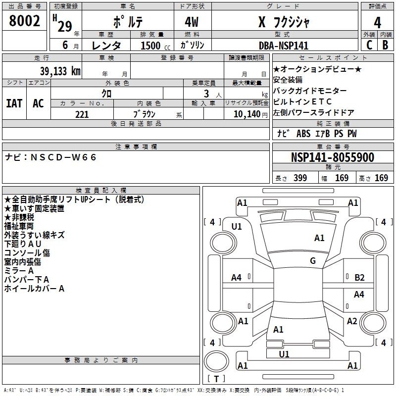 TOYOTA PORTE X WELLFARE CAR - лот 8002