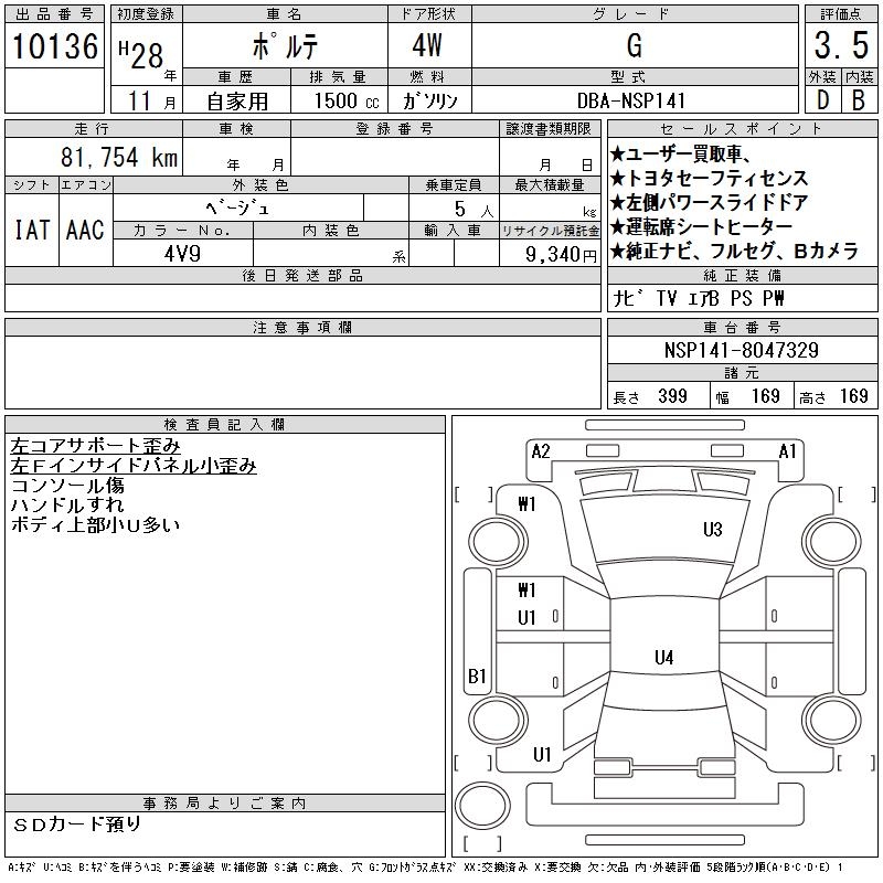 TOYOTA PORTE G - лот 10136