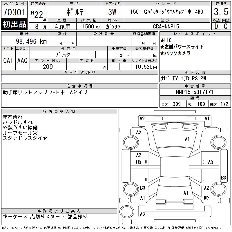 TOYOTA PORTE 150I G PACKAGE WELL 4WD - лот 70301