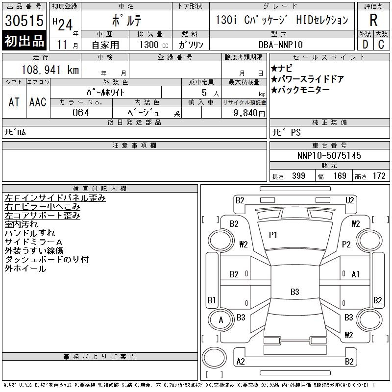 TOYOTA PORTE 130I C PACK HID SELECTION - лот 30515