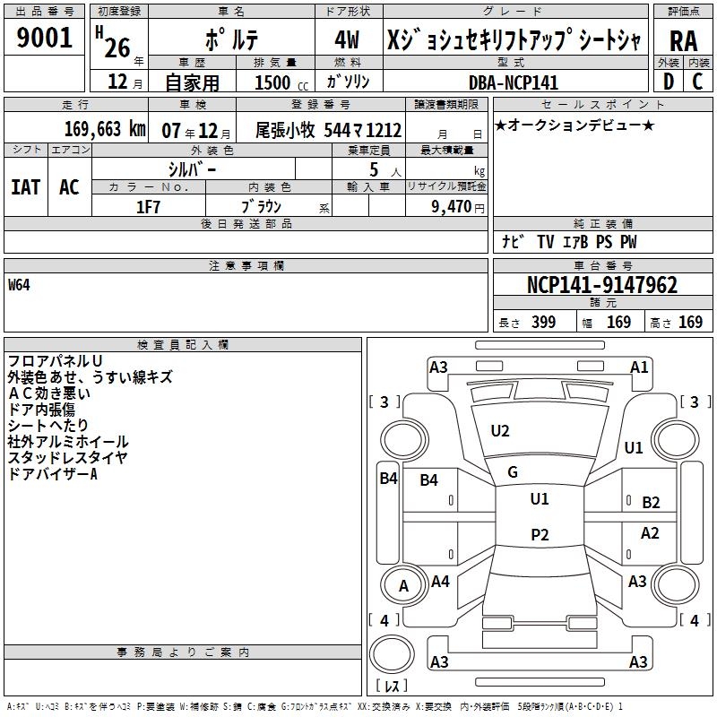 TOYOTA PORTE XJOSHU SEAT LIFT UP SEAT CAR - лот 9001