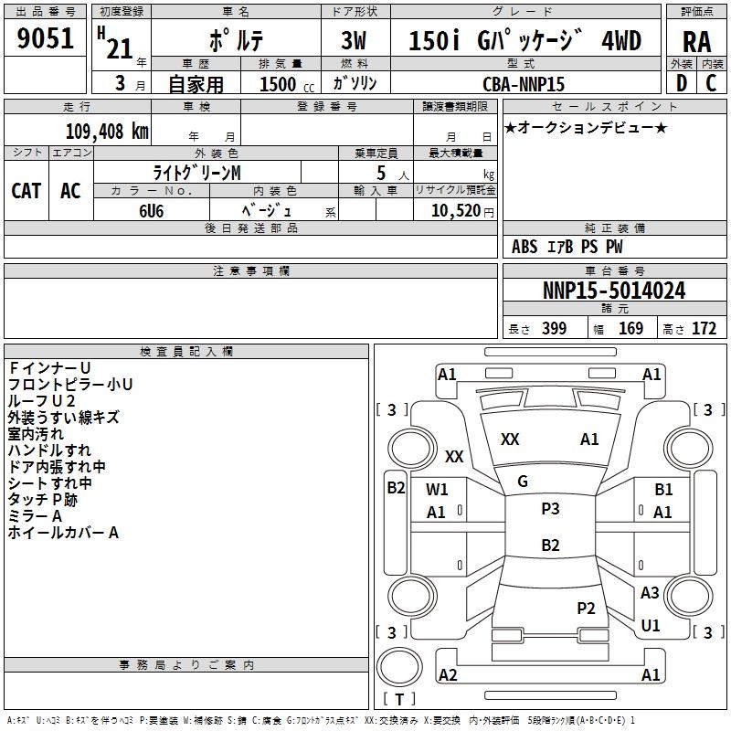 TOYOTA PORTE 150I G PACKAGE 4WD - лот 9051