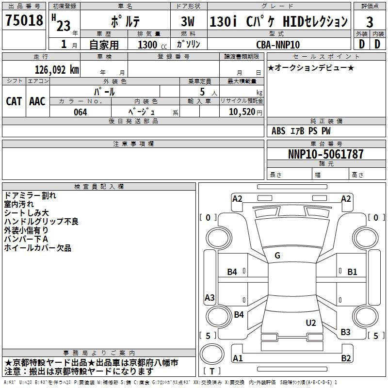 TOYOTA PORTE 130I C PACK HID SELECTION - лот 75018