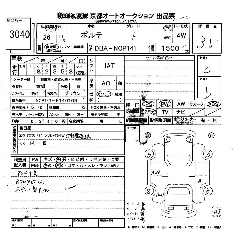 TOYOTA PORTE F - лот 3040