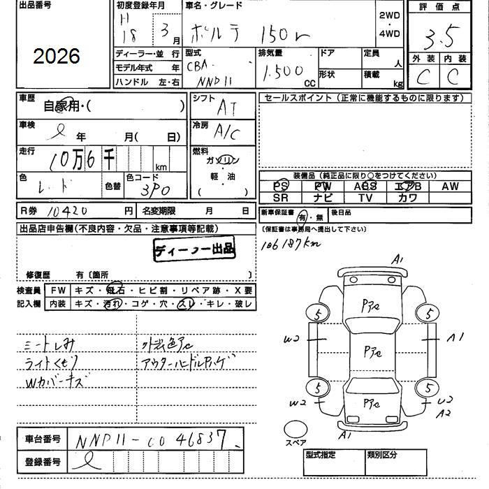 TOYOTA PORTE 150r - лот 2026