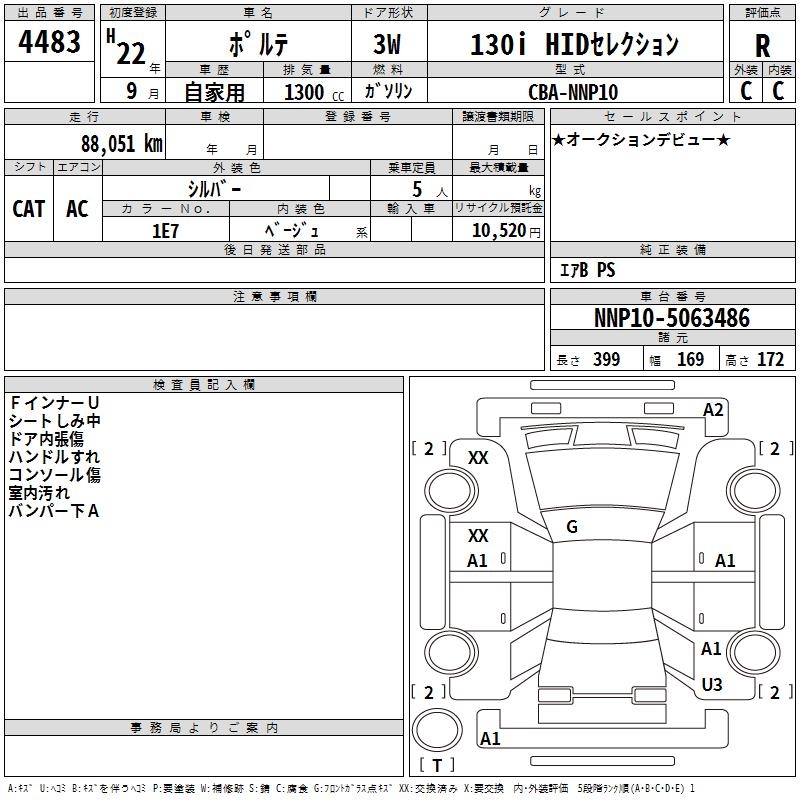 TOYOTA PORTE 130I HID SELECTION - лот 4483