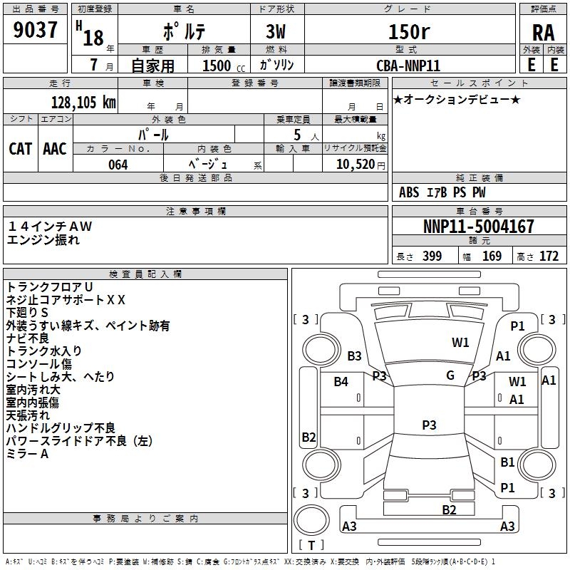 TOYOTA PORTE 150r - лот 9037