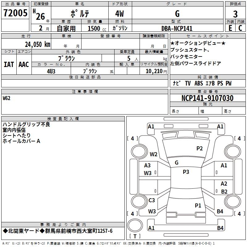 TOYOTA PORTE G - лот 72005