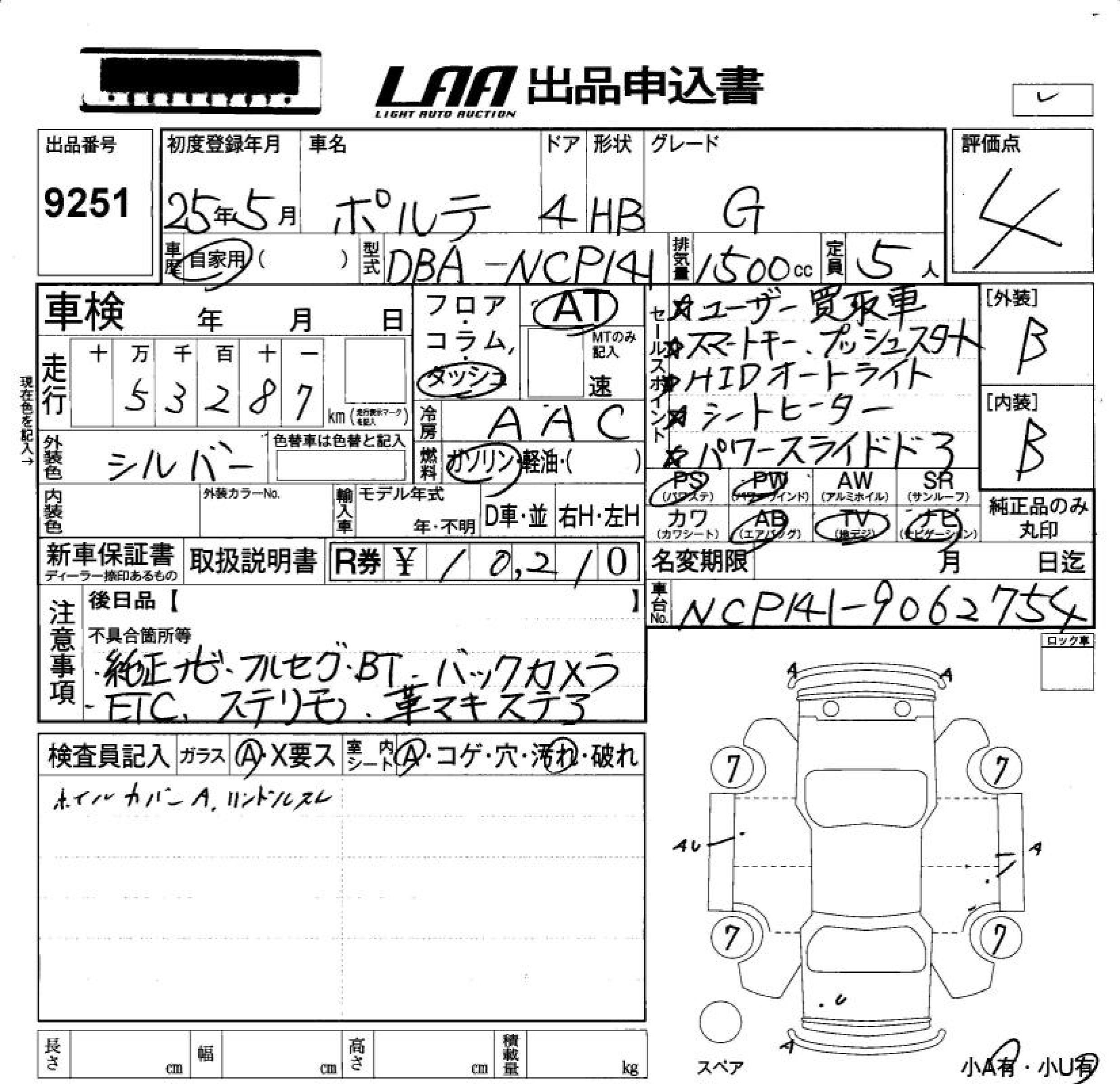 TOYOTA PORTE G - лот 9251