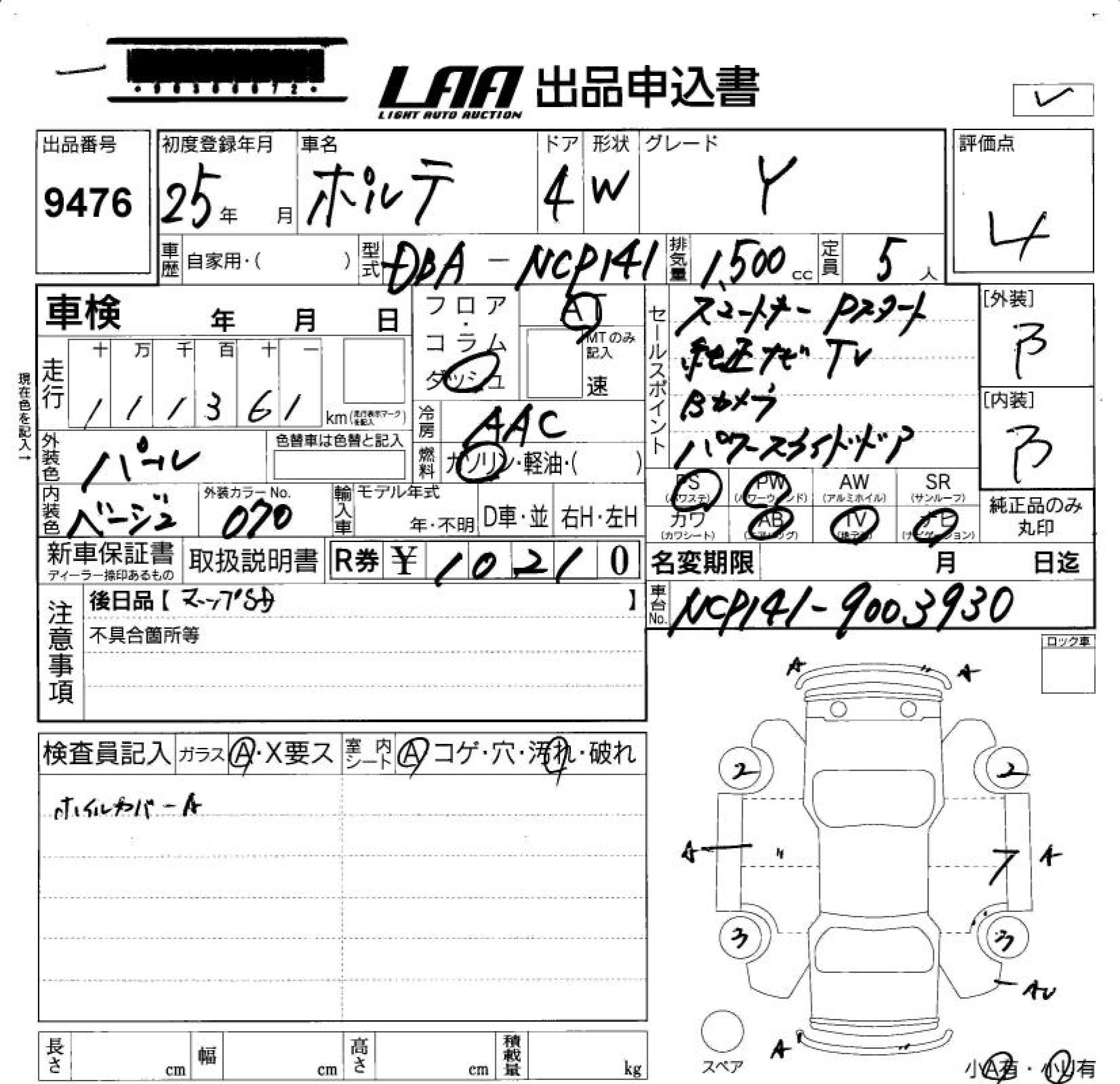 TOYOTA PORTE Y - лот 9476