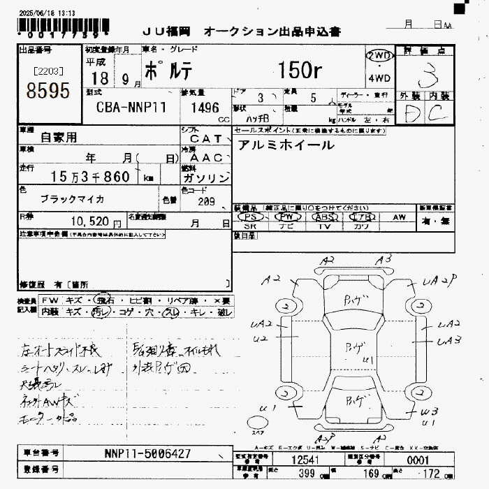 TOYOTA PORTE 150r - лот 8595