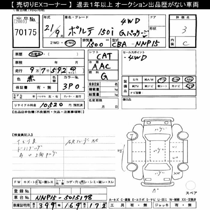 TOYOTA PORTE 4WD 150i G-PKG - лот 70175