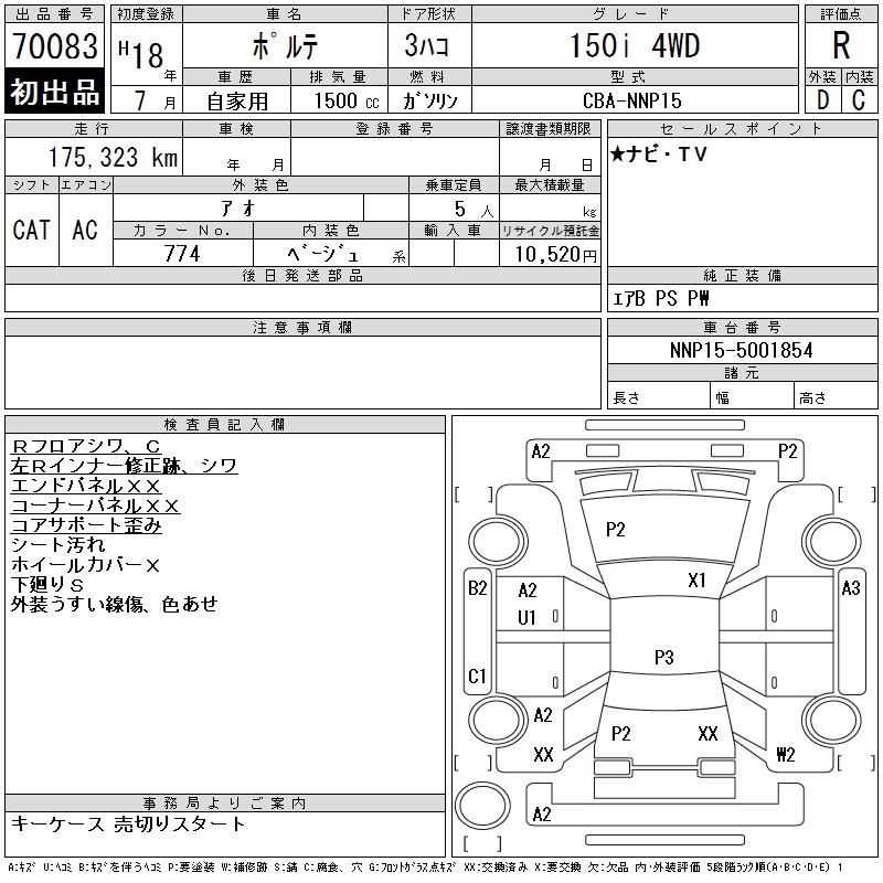 TOYOTA PORTE 150i 4WD - лот 70083