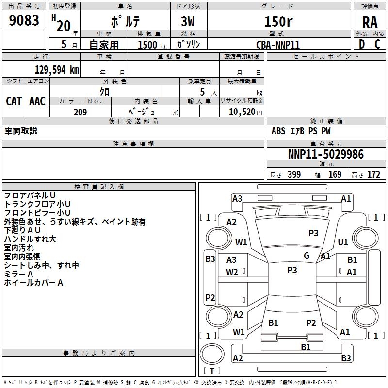 TOYOTA PORTE 150r - лот 9083