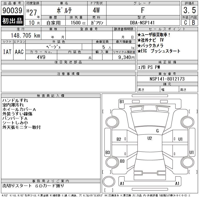 TOYOTA PORTE F - лот 90039
