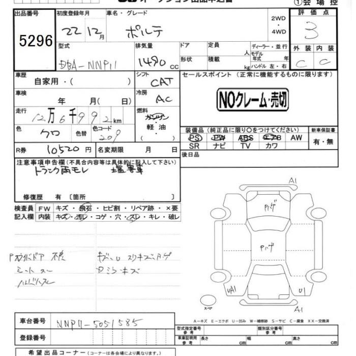 TOYOTA PORTE - лот 5296