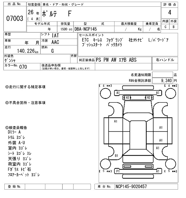 TOYOTA PORTE F - лот 7003