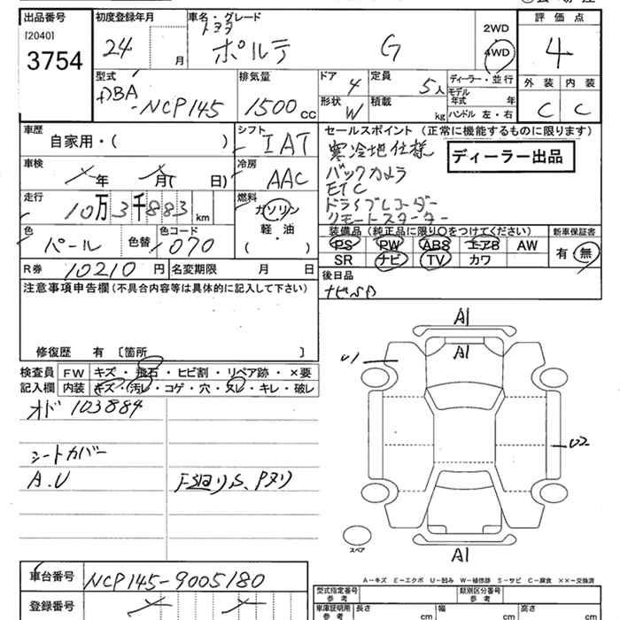 TOYOTA PORTE 4WD G - лот 3754