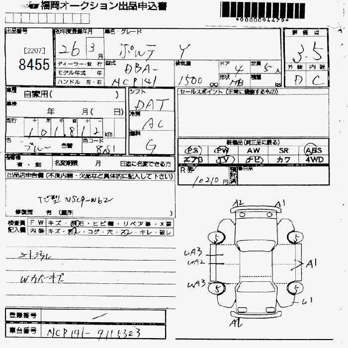 TOYOTA PORTE Y - лот 8455
