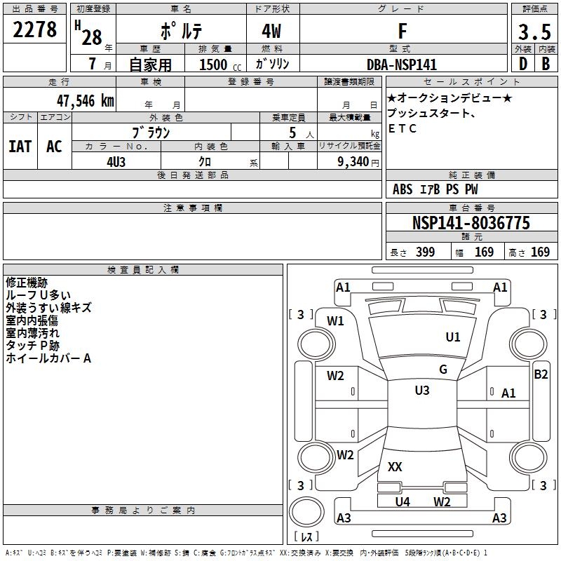 TOYOTA PORTE F - лот 2278