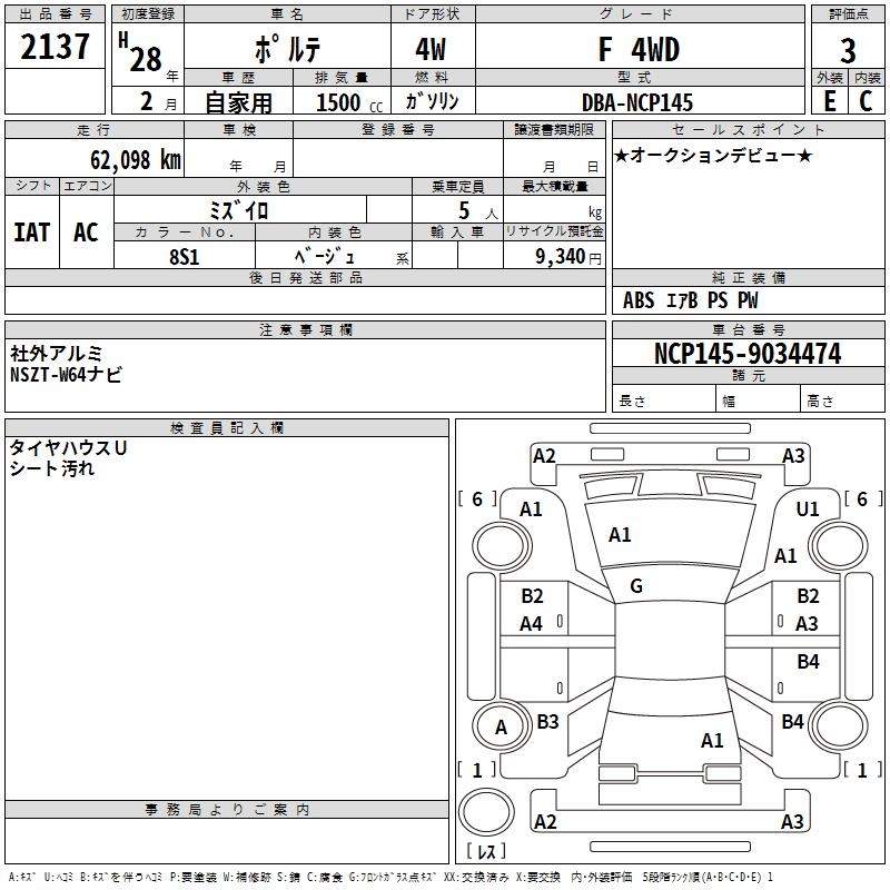 TOYOTA PORTE F 4WD - лот 2137
