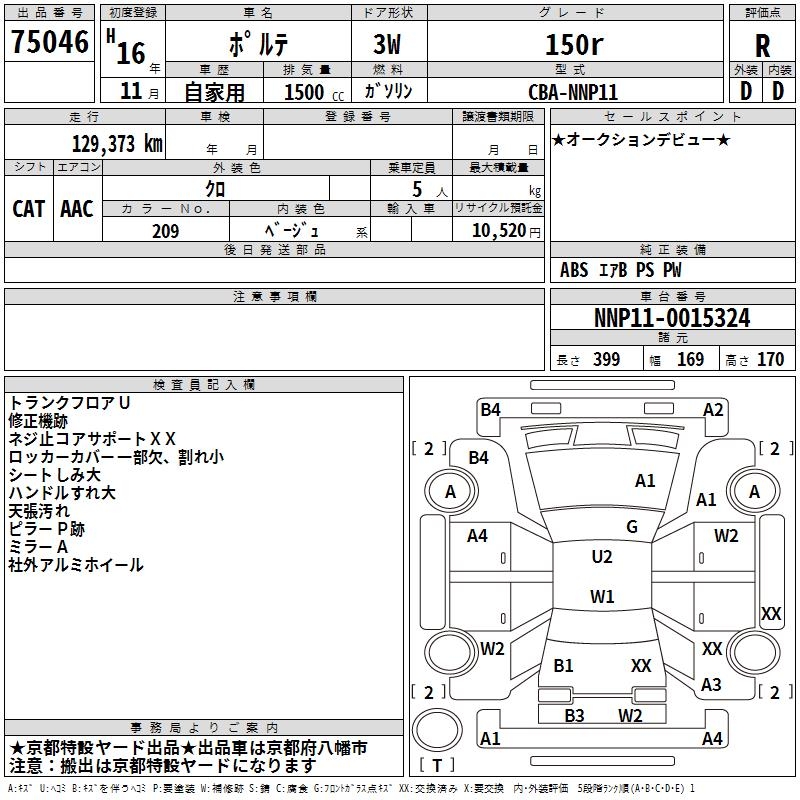 TOYOTA PORTE 150r - лот 75046