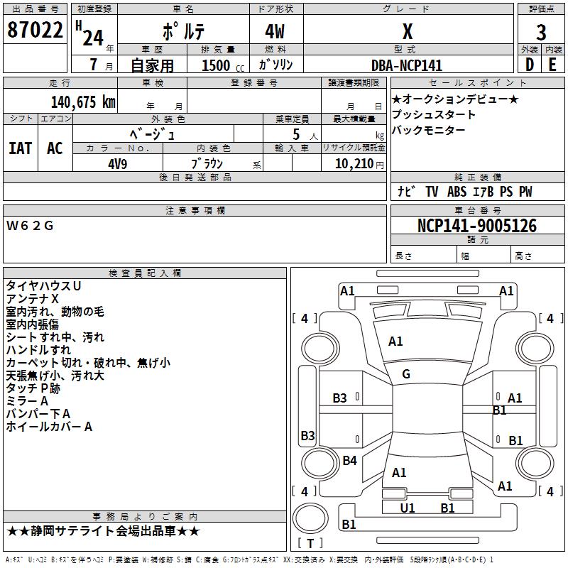 TOYOTA PORTE X - лот 87022