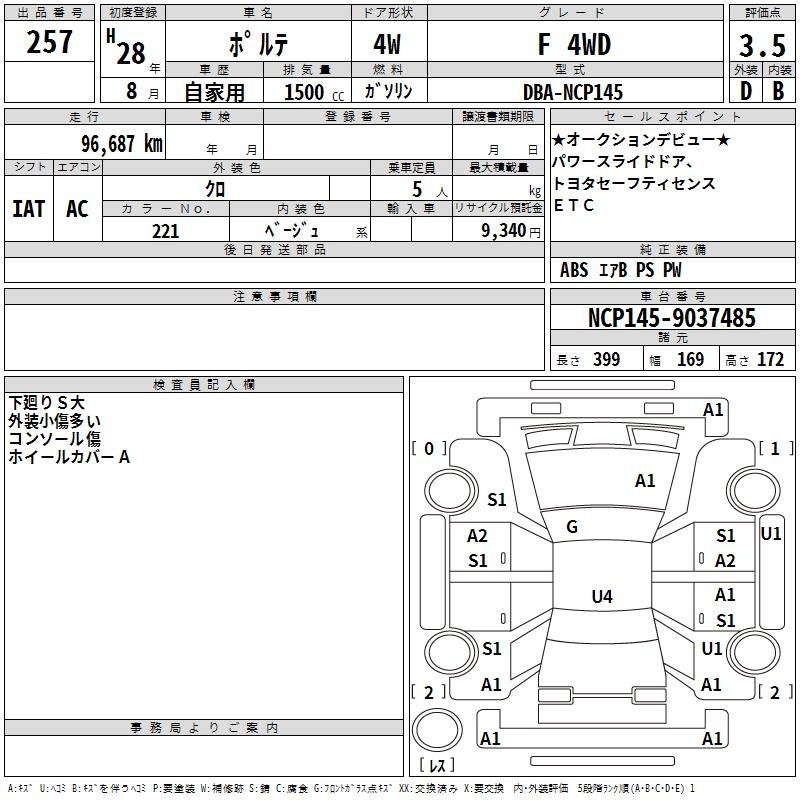 TOYOTA PORTE F 4WD - лот 257