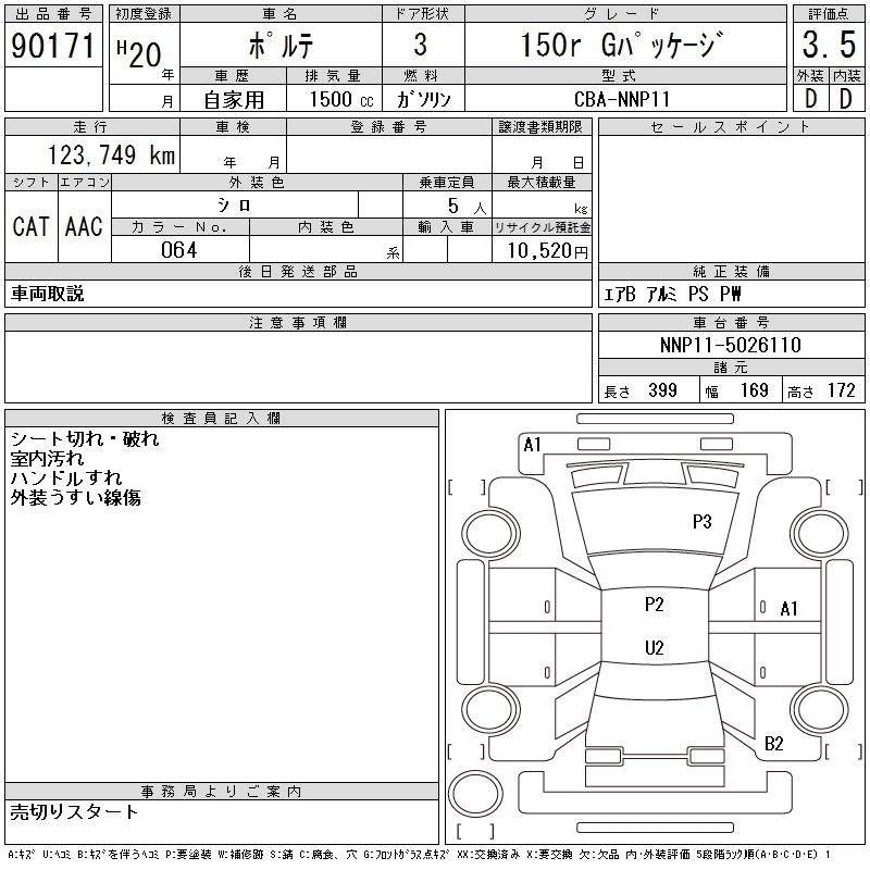 TOYOTA PORTE 150R G PACKAGE - лот 90171