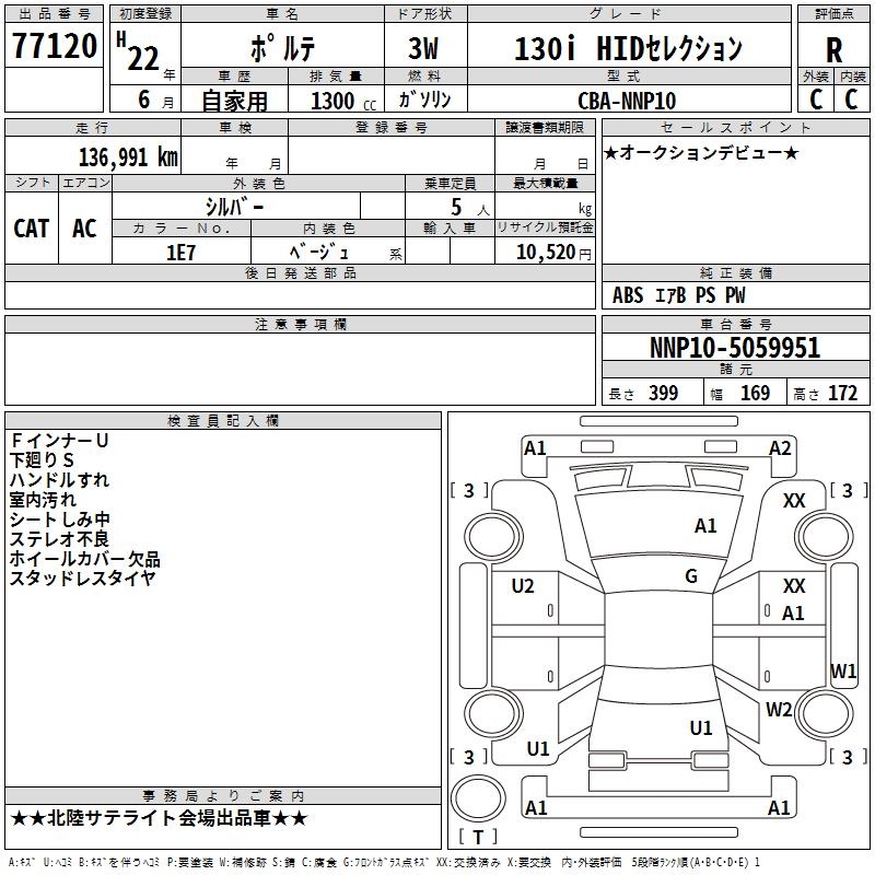 TOYOTA PORTE 130I HID SELECTION - лот 77120