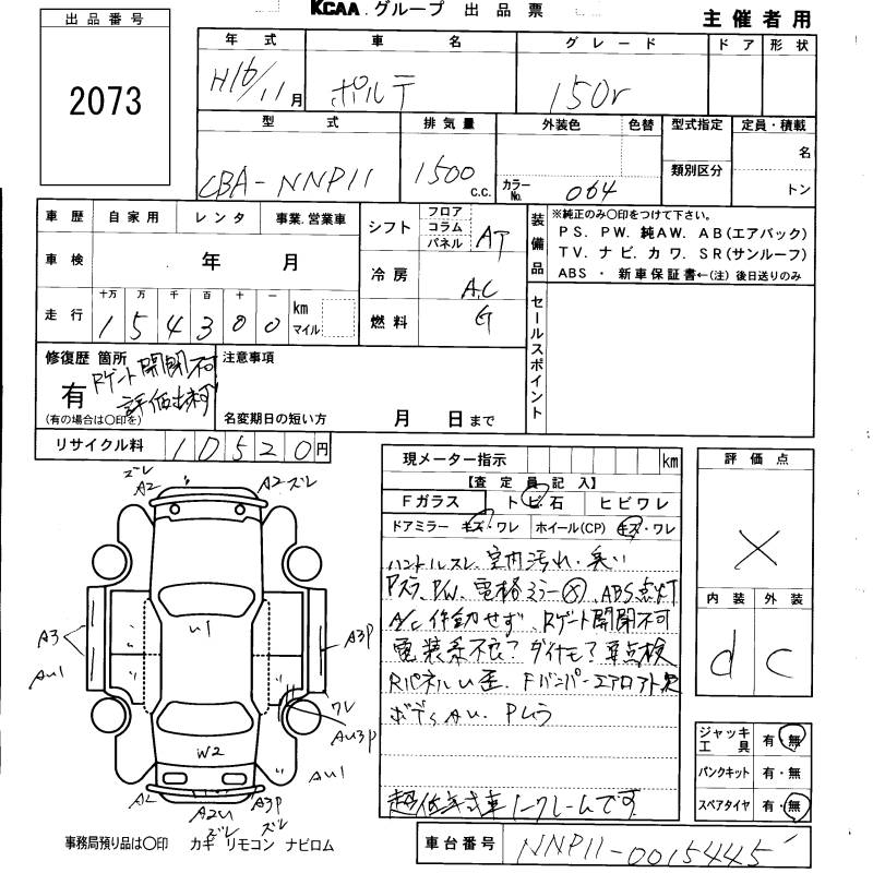 TOYOTA PORTE 150r - лот 2073