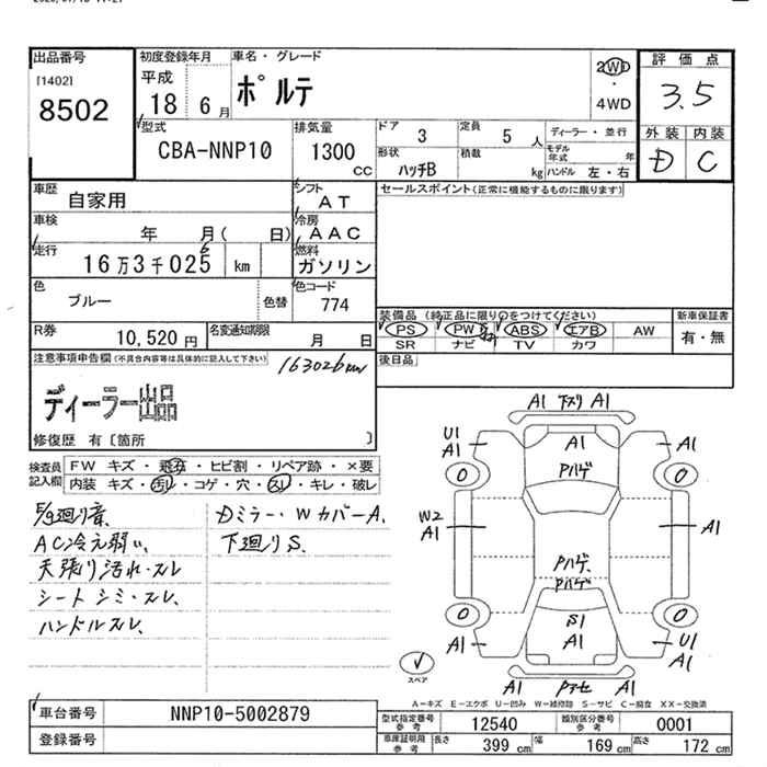 TOYOTA PORTE 2WD - лот 8502