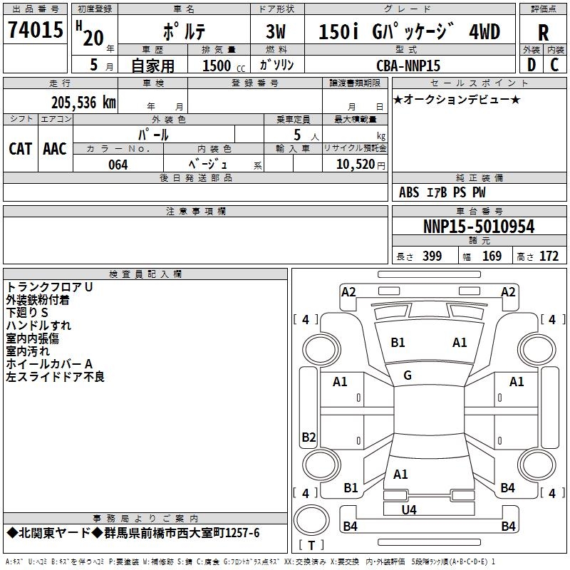 TOYOTA PORTE 150I G PACKAGE 4WD - лот 74015