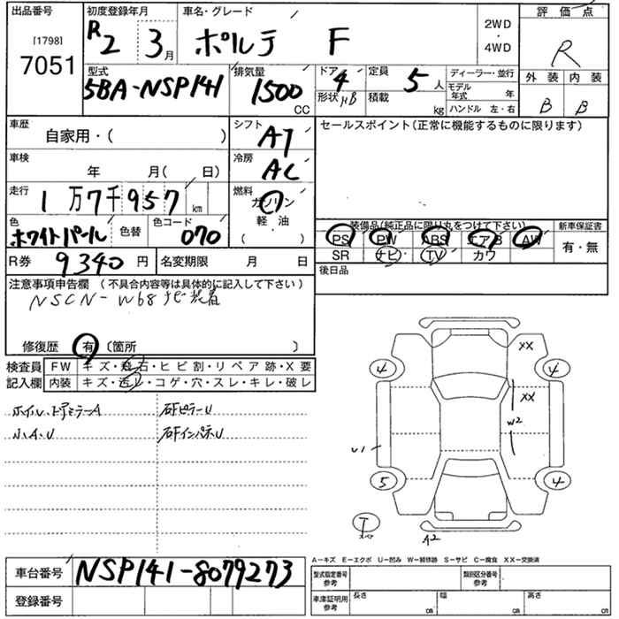 TOYOTA PORTE F - лот 7051