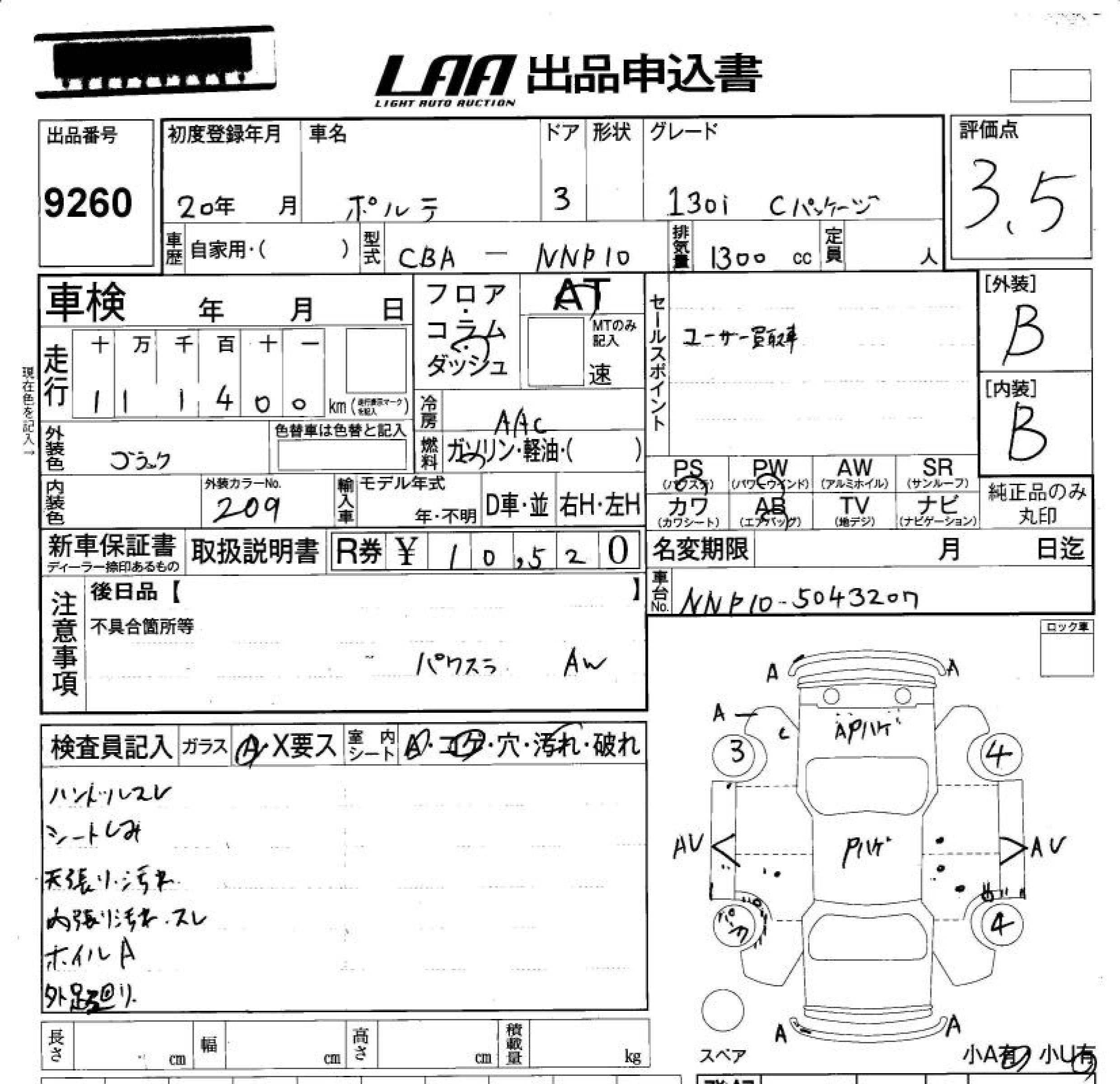 TOYOTA PORTE 130I C PACKAGE - лот 9260