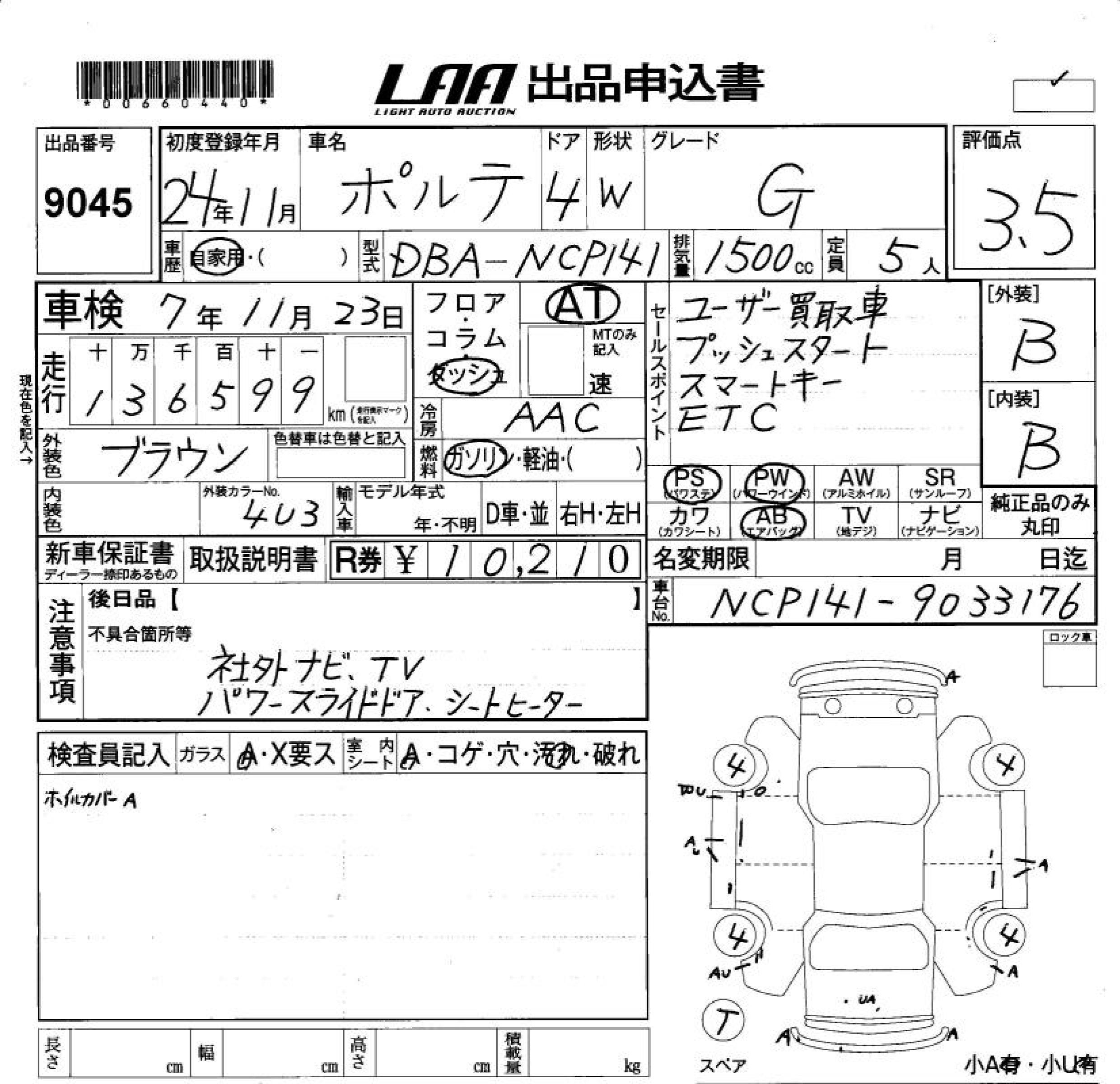 TOYOTA PORTE G - лот 9045