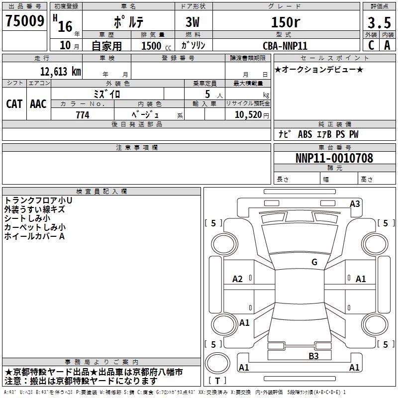 TOYOTA PORTE 150r - лот 75009